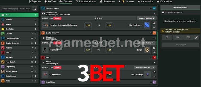 O 3Bet oferece uma grande seleção de opções de apostas em e-sports com probabilidades competitivas